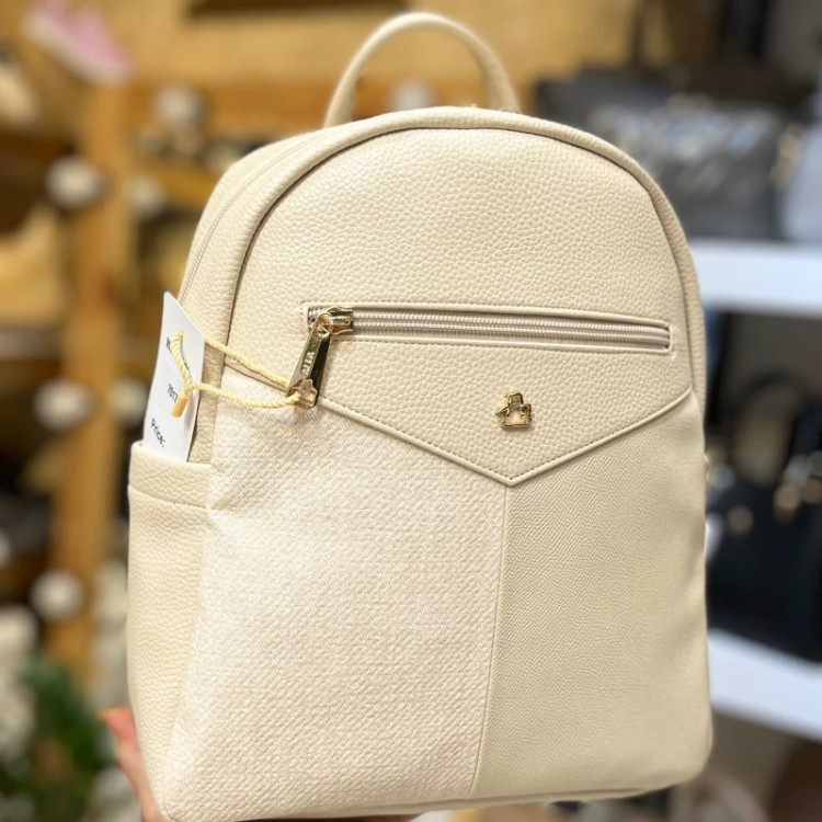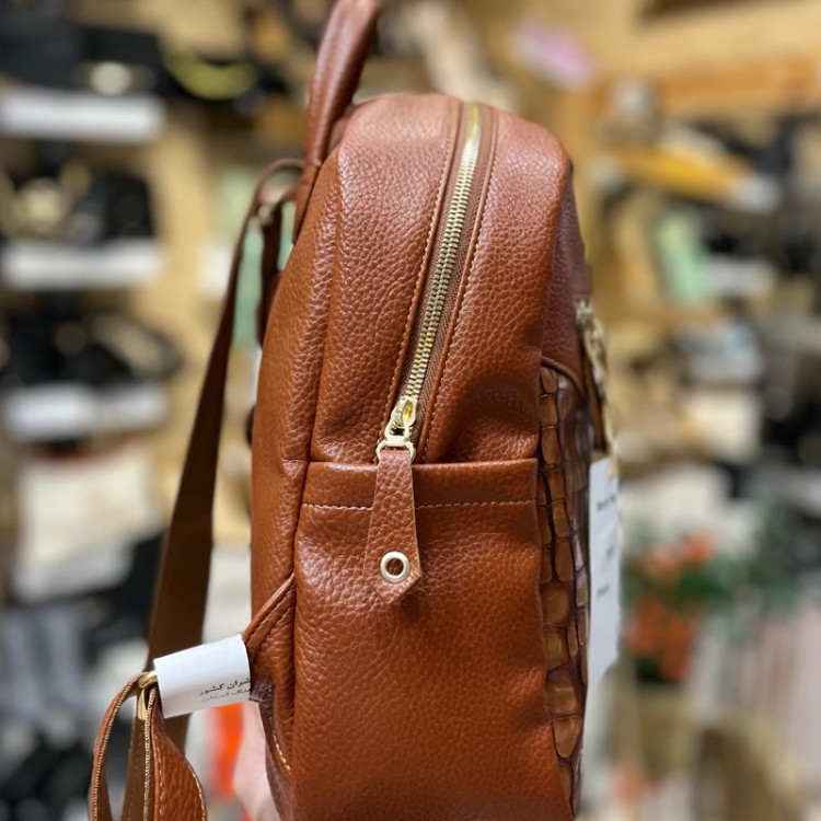 کوله پشتی شیک و کاربردی با سایز عالیش ترکیب جنس رویه های مختلف چرم مصنوعی وارداتی درجه 1 یراق آلات رنگ ثابت وارداتی رنگبندی مشکی شیری عسلی